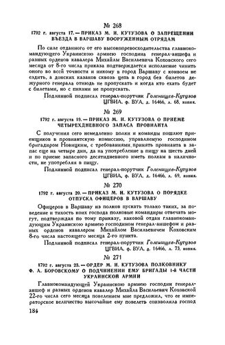 1792 г. августа 17. — Приказ М.И. Кутузова о запрещении въезда в Варшаву вооруженным отрядам