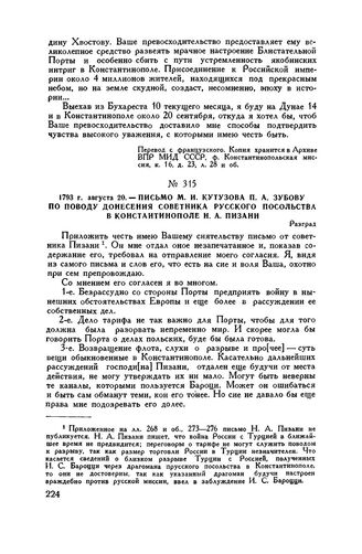 1793 г. августа 20. — Письмо М.И. Кутузова П.А. Зубову по поводу донесения советника русского посольства в Константинополе Н.А. Пизани. Разград
