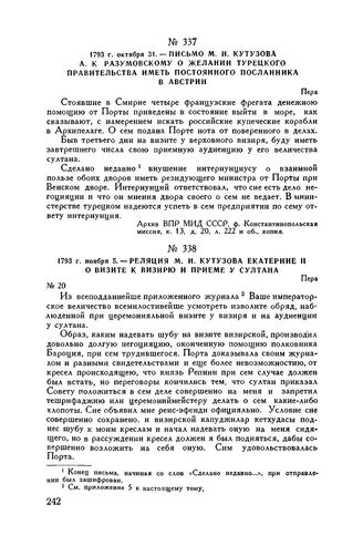 1793 г. ноября 5. — Реляция М.И. Кутузова Екатерине II о визите к визирю и приеме у султана. Пера