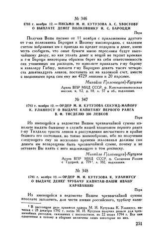 Главная Русские полководцы Кутузов М.И. Кутузов Т1 Документы 1793 г. ноября 12. — Письмо М.И. Кутузова А.С. Хвостову о выплате д...