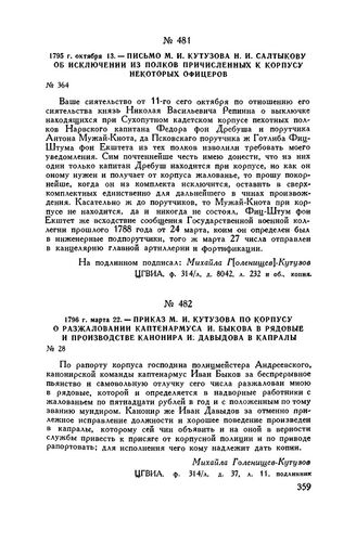 1795 г. октября 13. — Письмо М.И. Кутузова Н.И. Салтыкову об исключении из полков причисленных к корпусу некоторых офицеров