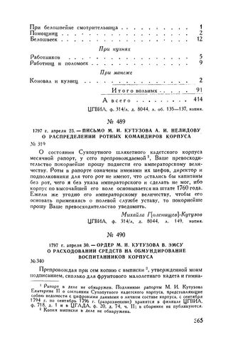 1797 г. апреля 30. — Ордер М.И. Кутузова В. Эмсу о расходовании средств на обмундирование воспитанников корпуса // ЦГВИА, ф. 314/л, д. 8044, л. 155 об., копия.