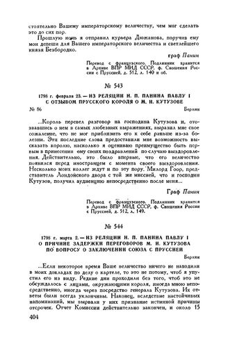 1798 г. марта 2. — Из реляции Н.П. Панина Павлу I о причине задержки переговоров М.И. Кутузова по вопросу о заключении союза с Пруссией. Берлин