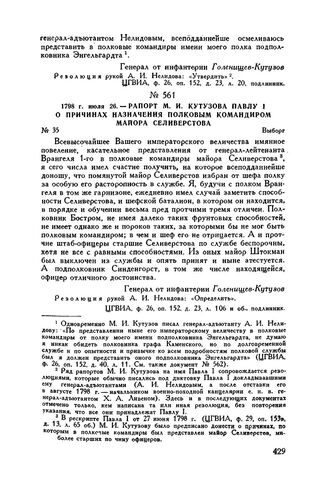 1798 г. июля 26. — Рапорт М.И. Кутузова Павлу I о причинах назначения полковым командиром майора Селиверстова. Выборг // ЦГВИА, ф. 26, оп. 152, д. 23, л. 106 и об., подлинник.