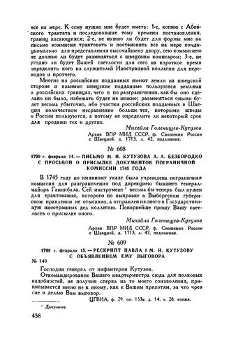 Главная Русские полководцы Кутузов М.И. Кутузов Т1 Документы 1799 г. февраля 15. — Рескрипт Павла I М.И. Кутузову с объявлением ...