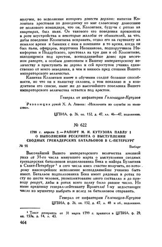 Главная Русские полководцы Кутузов М.И. Кутузов Т1 Документы 1799 г. апреля 2. — Рапорт М.И. Кутузова Павлу I о выполнении рескр...