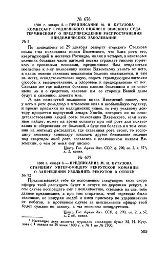 1800 г. января 2. — Предписание М.И. Кутузова комиссару Гродненского земского нижнего суда Терминскому о предупреждении распространения эпидемических заболеваний // Центр. Гос. Архив Лит. ССР, ф. 290, оп. 2, д. 57, л. 2, копия.