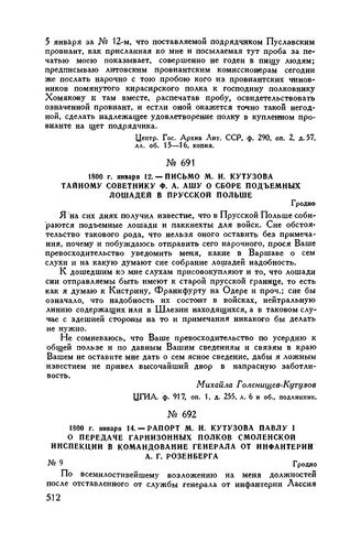 1800 г. января 14. — Рапорт М.И. Кутузова Павлу I о передаче гарнизонных полков Смоленской инспекции в командование генерала от инфантерии А.Г. Розенберга. Гродно // ЦГВИА, ф. 26, оп. 152, д. 69, л. 585, подлинник.