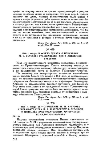 1800 г. января 23. — Указ Сената о поручении М.И. Кутузову гражданских дел в Литовской губернии