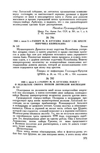 М.И. Кутузов. Т. I: Док. — М.: Воен. изд-во М-ва вооруж. сил СССР, 1950.