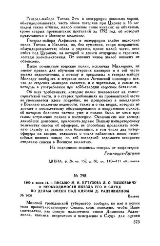 1800 г. июля 11. — Письмо М.И. Кутузова Л.О. Тышкевичу о необходимо...