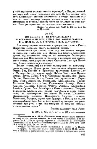 1800 г. декабря 14. — Из приказа Павла I о формировании трех армий под командованием П.А. Палена, М.И. Кутузова и И.П. Салтыкова // ЦГВИА, ф. 1 /л, оп. 1, д. 165, л. 234 и об., подлинник.