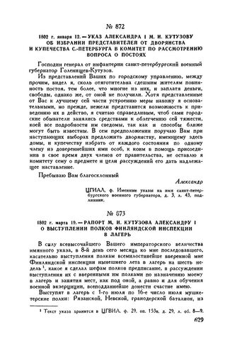 1802 г. января 12. — Указ Александра I М.И. Кутузову об избрании представителей от дворянства и купечества С.-Петербурга в Комитет по рассмотрению вопроса о постоях
