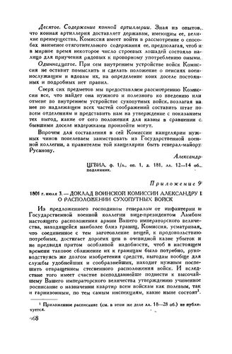 1801 г. июля 3. — Доклад Воинской комиссии Александру I о расположении сухопутных войск
