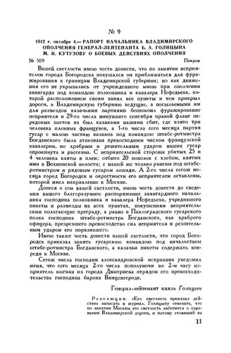 Главная Русские полководцы Кутузов М.И. Кутузов Т4 ч.2 Документы 1812 г. октября 4. — Рапорт начальника Владимирского ополчения гене...