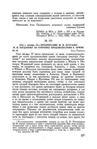 1812 г. октября 19. — Предписание М.И. Кутузова Н.И. Богданову об отправке продовольствия к армии. Село Спасское