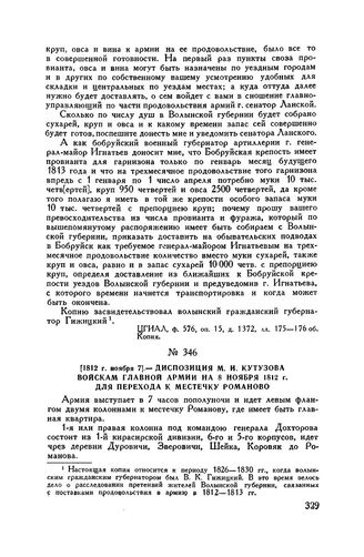 1812 г. ноября 7. — Диспозиция М.И. Кутузова войскам Главной армии на 8 ноября 1812 г. для перехода к местечку Романово