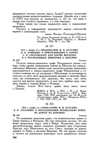 1812 г. ноября 11. — Предписание М.И. Кутузова Д.В. Давыдову о присоединении к отряду А.П. Ожаровского для взятия Могилева и о последующем движении к Березино. Ланенка