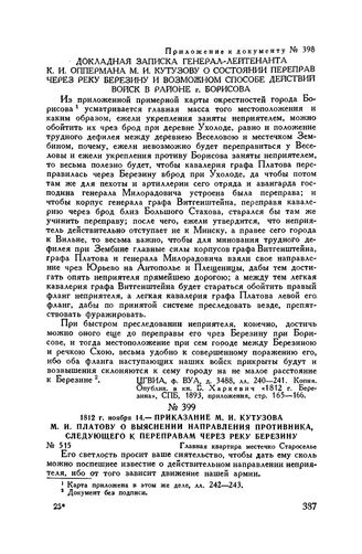 Приложение к письму М.И. Кутузова П.X. Витгенштейну. Докладная записка генерал-лейтенанта К.И. Оппермана М.И. Кутузову о состоянии переправ через реку Березину и возможном способе действий войск в районе г. Борисова // ЦГВИА, ф. ВУА, д. 3488, лл. 240-241. Копия. Опублик. в кн. В. Xаркевич «1812 г. Березина», СПБ, 1893, приложения, стр. 163-166.