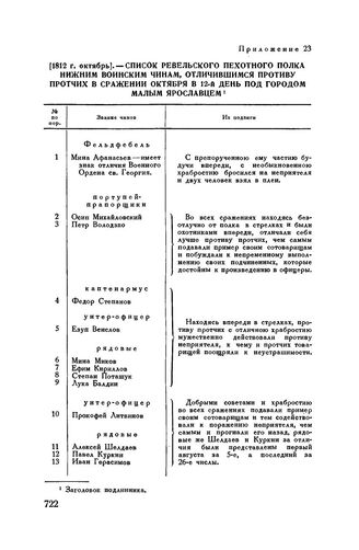 1812 г. октябрь. — Список Ревельского пехотного полка нижним воинским чинам, отличившимся противу протчих в сражении октября в 12-й день под городом Малым Ярославцем