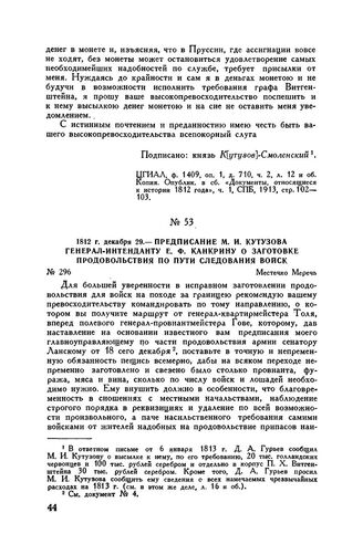 1812 г. декабря 29. — Предписание М.И. Кутузова генерал-интенданту ...