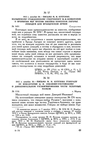 Главная Русские полководцы Кутузов М.И. Кутузов Т5 Документы 1812 г. декабря 30. — Письмо М.И. Кутузова волынскому гражданскому ...