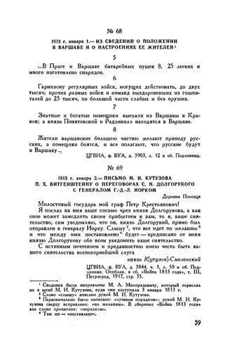1813 г. января 1. — Из сведений о положении в Варшаве и о настроениях ее жителей // ЦГВИА, ф. ВУА, д. 3903, л. 12 и об. Подлинник.