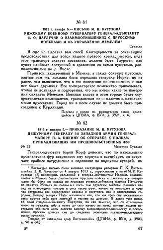 Главная Русские полководцы Кутузов М.И. Кутузов Т5 Документы 1813 г. января 5. — Письмо М.И. Кутузова рижскому военному губернат...
