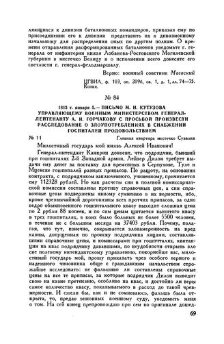 Главная Русские полководцы Кутузов М.И. Кутузов Т5 Документы 1813 г. января 5. — Письмо М.И. Кутузова управляющему Военным минис...