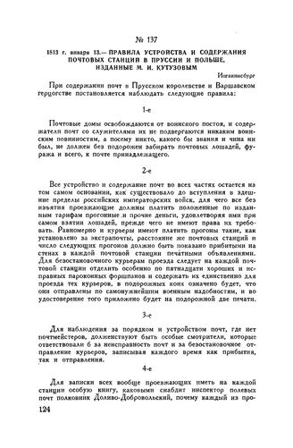 1813 г. января 13. — Правила устройства и содержания почтовых станций в Пруссии и Польше, изданные М.И. Кутузовым. Иоганнисбург