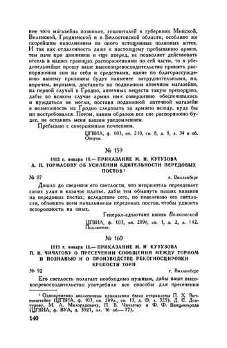 1813 г. января 18. — Приказание М.И. Кутузова П.В. Чичагову о пресечении сообщений между Торном и Познанью и о производстве рекогносцировки крепости Торн. г. Вилленберг // ЦГВИА, ф. ВУА, д. 3949, л. 7. Подлинник.