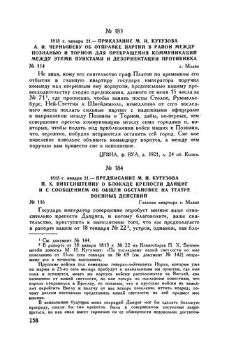 1813 г. января 21. — Приказание М.И. Кутузова А.И. Чернышеву об отправке партии в район между Познанью и Торном для прекращения коммуникаций между этими пунктами и дезориентации противника. г. Млава // ЦГВИА, ф. ВУА, д. 3921, л. 24 об. Копия.