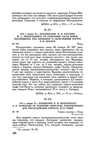 1813 г. января 28. — Сообщение П.М. Волконского А.П. Тормасову об усилении авангарда, направляемого для преследования корпуса Ж.-Л. Ренье. Главная квартира г. Плоцк