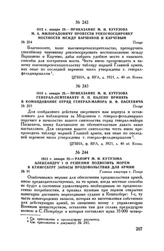 1813 г. января 29. — Приказание М.И. Кутузова М.А. Милорадовичу провести рекогносцировку местности между Варшавой и Карчевым. Плоцк // ЦГВИА, ф. ВУА, д. 3921, л. 40 об. Копия.