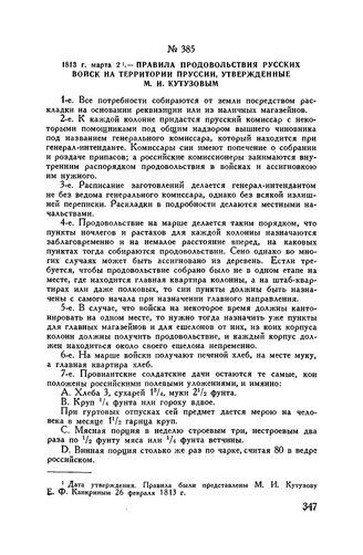 1813 г. марта 2. — Правила продовольствия русских войск на территории Пруссии, утвержденные М.И. Кутузовым