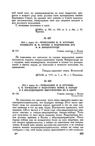 1813 г. марта 18. — Приказание М.И. Кутузова ротмистру М.Ф. Орлову ...