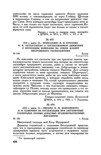 Главная Русские полководцы Кутузов М.И. Кутузов Т5 Документы 1813 г. марта 18. — Письмо П.М. Волконского Е.Ф. Канкрину об органи...
