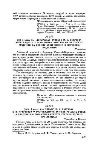Главная Русские полководцы Кутузов М.И. Кутузов Т5 Документы 1813 г. марта 31. — Докладная записка М.И. Кутузова Александру I о ...