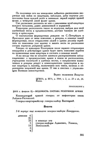 Главная Русские полководцы Кутузов М.И. Кутузов Т5 Документы 1813 г. февраля 5. — Ведомость состава резервной армии