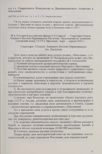 Отставной российский офицер Е. В. Сенигов — Секретарю Отдела Ближнего Востока Наркоминдела Пастухову. Предложения по развитию отношений между СССР и Эфиопией. Март—апрель 1924 г.