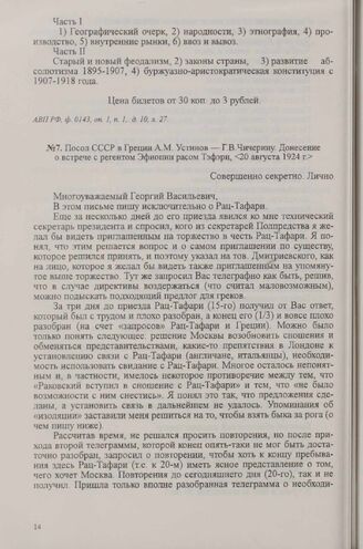 Посол СССР в Греции А. М. Устинов — Г. В. Чичерину. Донесение о вст...