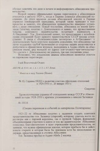 Справка НКИД о развитии советско-эфиопских отношений в 1924-1930 гг. 20 января 1933 г.