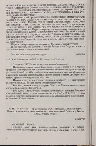 Г. В. Чичерин — представителю СССР в Италии П. М. Керженцеву. Письмо о возможном налаживании торговых отношений Советской России и ЮАС, 9 июля 1925 г.