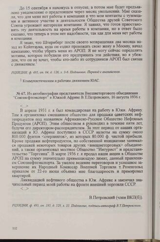 Из автобиографии представителя Внешнеторгового объединения «Союзнефтеэкспорт» в Южной Африке В. Т. Петровского, 16 августа 1936 г.