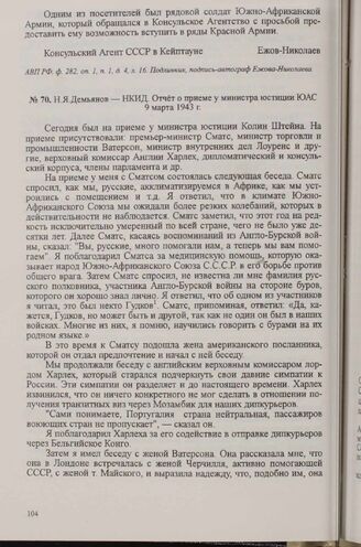 Главная Россия и Африка ХVIII в.-1960 г. Россия и Африка. ХVIII в.-1960 г.: Док. и материалы. Т. II. 1918-19... Н. Я. Демьянов — НКИД. Отчёт о приеме у министра юстиции ЮАС, 9 мар...