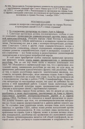 Председатель Государственного комитета по культурным связям с зарубежными странами при Совете Министров СССР Г. А. Жуков — ЦК КПСС, 14 ноября 1958 г. Рекомендации по пропаганде на страны Азии и Африки совещания советских востоковедов по проблемам современного положения в странах Востока, 1 ноября 1958 г. // ЦХСД, ф. 5, оп. 30, д. 273, л. 177-182, 192. Подлинник, подпись-автограф Г. А. Жукова.