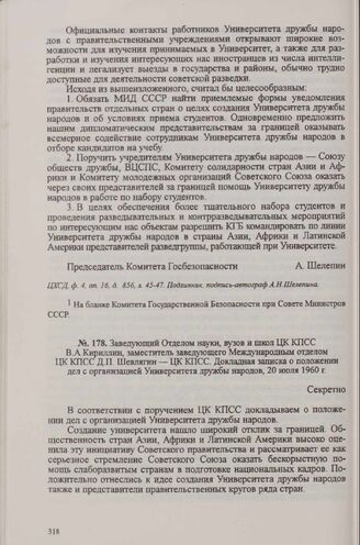 Заведующий отделом науки, вузов и школ ЦК КПСС В. А. Кириллин, заместитель заведующего Международным отделом ЦК КПСС Д. П. Шевлягин — ЦК КПСС. Докладная записка о положении дел с организацией Университета дружбы народов, 20 июля 1960 г. // ЦХСД, ф. 4, oп. 16, д. 856, Л. 37-40. Подлинник, подписи-автографы В. А. Кириллина и Д. П. Шевлягина.