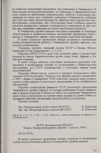 Постановление ЦК КПСС «Вопрос Университета дружбы народов», 2 августа, 1960 г.