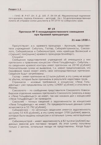 Протокол № 5 междуведомственного совещания при Краевой прокуратуре. 21 мая 1930 г. // ГАНО. Ф. Р-47. Оп. 5. Д. 105. Л. 55-55 об. Машинописная заверенная копия того времени.