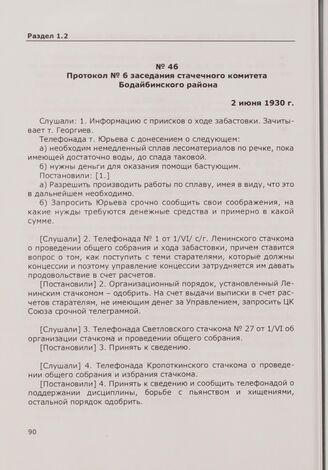 Протокол № 6 заседания стачечного комитета Бодайбинского района. 2 июня 1930 г.
